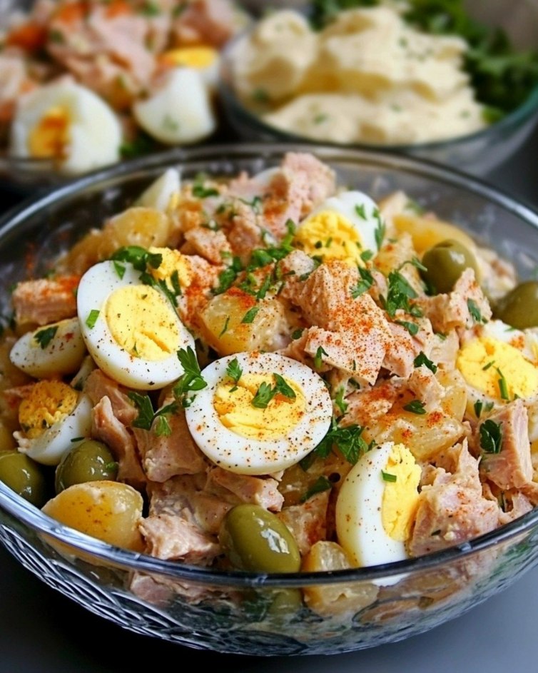 Sałatka ziemniaczana z tuńczykiem i świeżymi jajkami