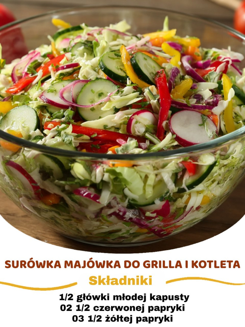 # Składniki: → Składniki główne 01 – 1/2 główki młodej kapusty 02 – 1/2 czerwonej papryki 03 – 1/2 żółtej papryki 04 – 1 czerwona cebula 05 – 1 długi ogórek 06 – 1 pęczek rzodkiewki 07 – 1 pęczek szczypiorku → Zalewa 08 – 200 ml przegotowanej, zimnej wody 09 – 5 łyżek octu spirytusowego 10% 10 – 2 łyżki naturalnego miodu (najlepiej nawłociowego … Read more
